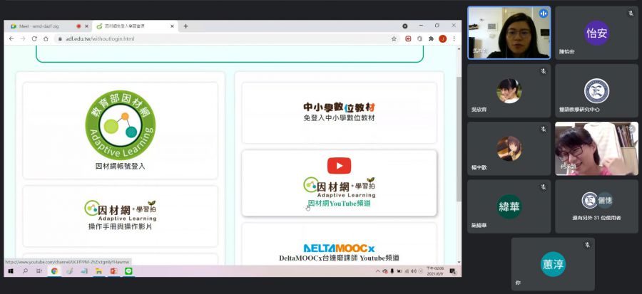 本計畫業於110年6月9日(三)下午14時辦理「2021雙語教學教師增能研習(第三場次)」完竣,以Google Meet遠距會議方式,由英語系陳怡安助理教授擔任研習主持人,會中邀請臺中市北區健行國小馬梓育老師擔任專題主講人,演講題目為「因材網融入雙語教學的應用(進階) Advanced Scaffolding CLIL via Adaptive Learning Website」。