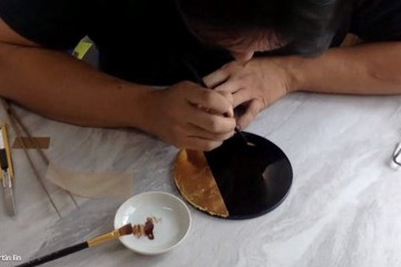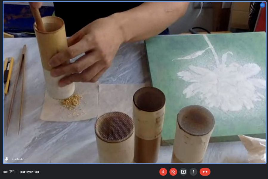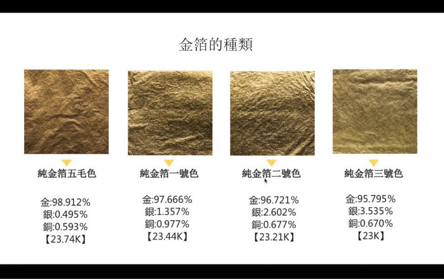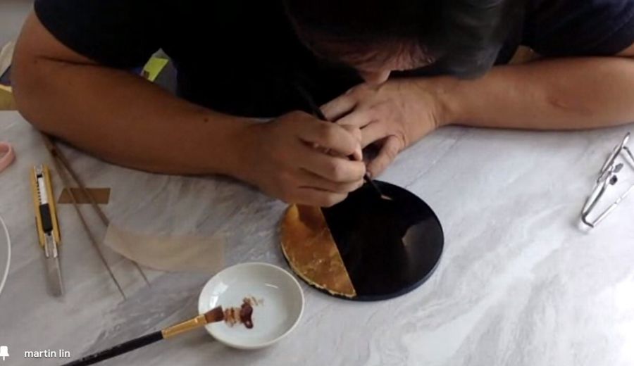 此次講座邀請東海大學美術系專任助理教授林彥良老師來講解金箔的應用。金箔在膠彩畫裡是個重要也常見的元素,因其特殊的延展性,可利用成分調配延伸出各種色型,例如:純金箔五毛色、一號色等。並可透過平貼、砂子金、截金、野毛金等各種技法,將金箔的光澤感與貴氣展現的淋漓盡致,在膠彩畫上與各色顏料共同展現出色彩之美。除此之外,老師也講解了漆的種類、特性與各式漆藝技法,並親自示範金箔的應用與技巧,帶領學員們共同探究金箔的奧秘,以及解答針對運用金箔所延伸出來的疑問。