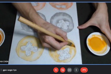 此次講座邀請到日本膠彩畫家白田誉主也講解他在台灣創作的心路歷程。白田老師到台灣後開始思考自己的根源是什麼,這使他對自己的家鄉想更深入地去探索瞭解,白田老師認為探討根源是不可或缺的事情,明白自己的起源才能加深自己創作的說服力,所以他的作品開始用動物搭配日本傳統祭典來做表達。講座中老師介紹了礦物顏料的特性和顆粒大小之間所呈現出來的差異,並親自示範了如何將顏料平塗於畫布上,以及將礦物顏料平塗至飽和的技巧。