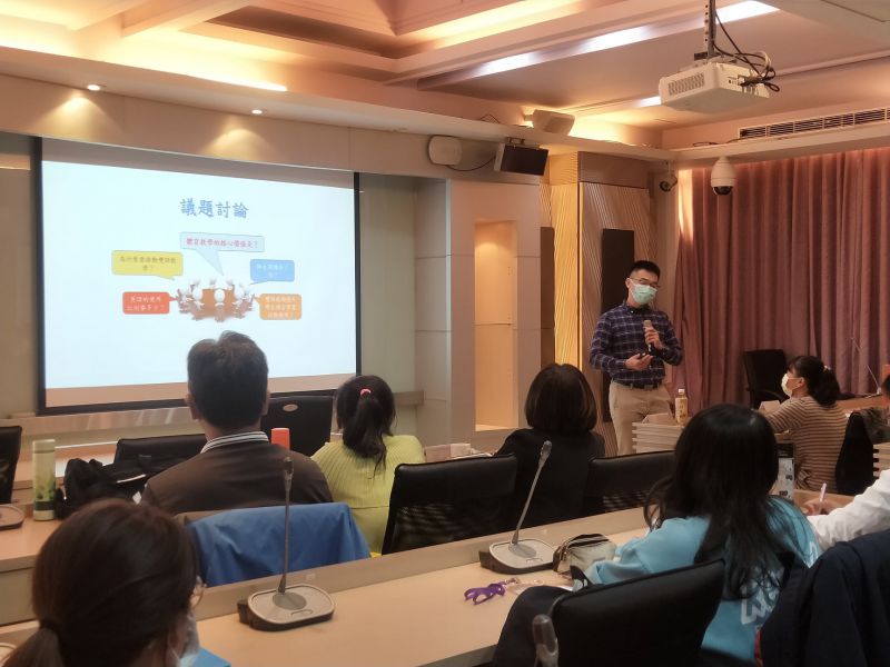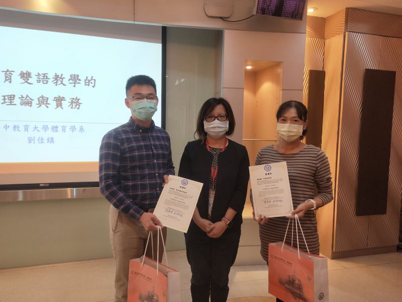 會中劉佳鎮助理教授首先說明目前國家推行雙語教育的政策,再以體育雙語的角度切入,探討體育雙語教學可能會遇到的困難及問題,以及如何透過多模態的輔助使教學更加順利,最後則邀請新社國小許富晶老師上台,透過實際教學影片,向與會者分享如何設計雙語體育課程的心得,期能透過由宏觀至微觀的說明,提升教師導入數學雙語教學的意願,並提升教師教學效能與學生學習成效。