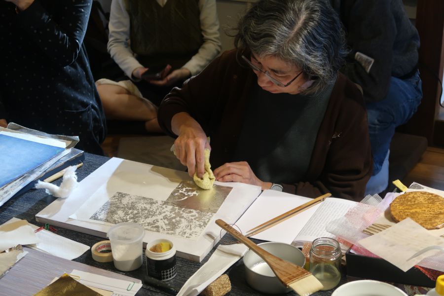 藉由畫筆與顏料的應用和身體節奏的想像,以快慢、點捺、壓擦,找尋自然相對應的材料實驗,並活用顏料和媒材與眾不同的「觸覺性」和「視覺性」,組構畫面裡具東方材料特質上的表現。鋪陳創作的情感與自身的經歷,加以細細描繪,一筆一畫都是生命記憶中淬煉的溫柔。