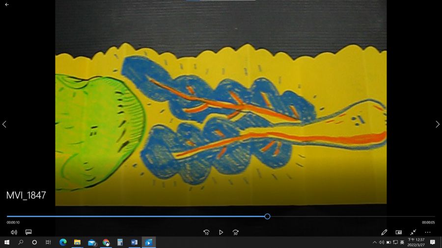 學生在155公分長的紙面上繪製具有故事性的連續圖畫;