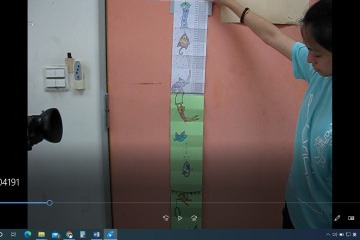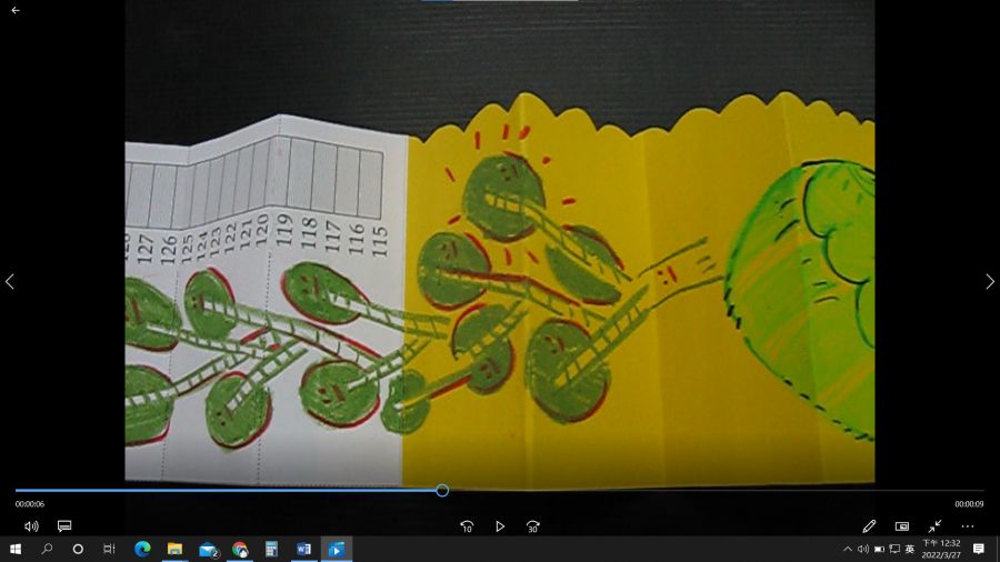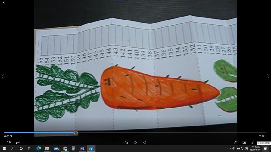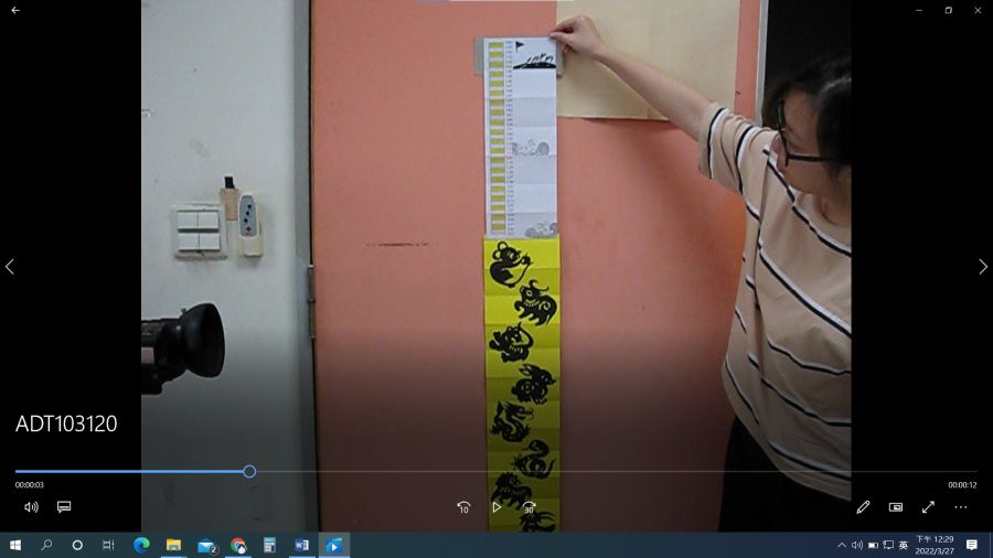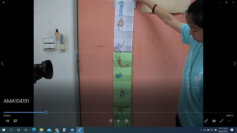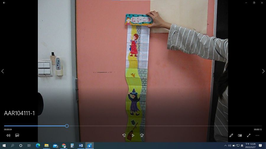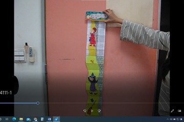 1. 學生操作「身高摺疊書」,模擬為小朋友測量身高的情況,一面呈現繪本圖畫,一面進行故事說演:「……,你又長高了5公分」、或是「……,你又多了3公分」;