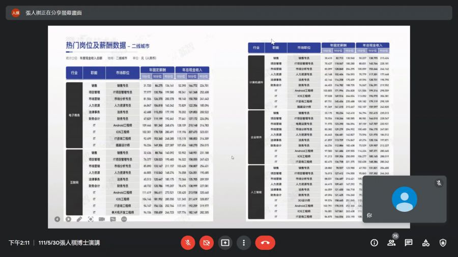 針對大學部及碩士班學生未來與世界接軌到中國、東南亞工作,對於各國資訊產業不熟悉、薪資待遇是否較國內優渥等問題。本次邀請新傳媒娛樂股份有限公司張人祺博士蒞臨分享自身經驗。