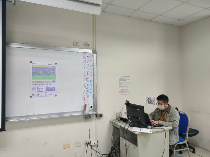 【本校111年高等教育深耕計畫,全體教職員生培力增能系列講座第5場講座:海報製作入門-AI基礎應用(下),圓滿完成!】 本校由校務中心開設一系列講座提供全體教職員生進行自我能力增進,藉由培力增能講座增進其相關能力,持續邀請豆點整合工作室劉長儒老師,於111年10月24日進行分享,繼上週老師分享AI之基礎應用,手把手教學文字到多樣化的圖案,今天進階教學,如何將心儀的顏色變換成海報底色,並透過軟體運用,製作漸層及加上不同形狀之色塊,令海報更加多元豐富,最後更是教導大家如何進行儲存及印製,兩堂課上下來,相信大家收穫滿滿並具有基礎能力,希冀大家都能製作出美美的海報。