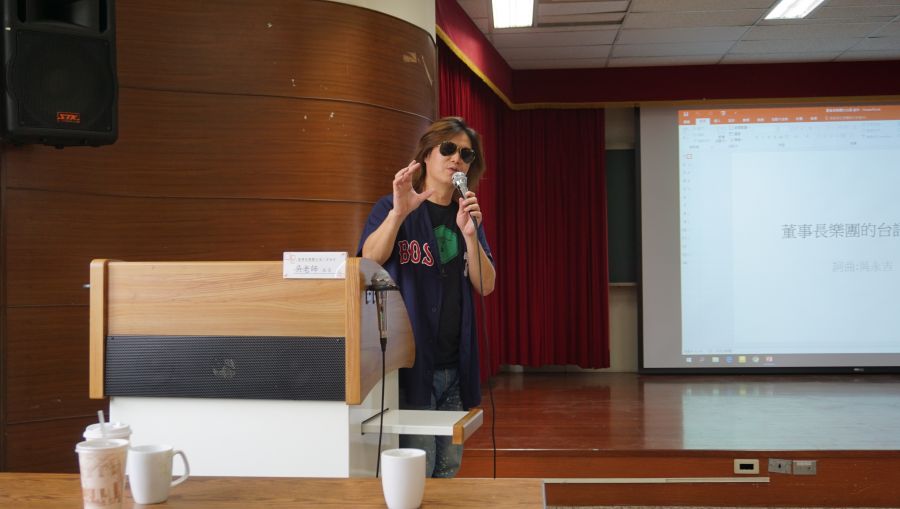 當今高度知識化的年代,會說台語的年輕人已經逐漸減少,因此學校透過課程或系所延續這項語言,而學校之外,「音樂」便是學習與推展語言很好的途徑之一。台語歌謠課程善用音樂激發學生學習和了解台語,且台語歌曲本身亦有其特色與內涵,是台灣重要的無形資產。語言文化和音樂本身就存在著密切的關係,因此本次邀請台灣以台語歌創作為主的知名樂團「董事長樂團」─主唱吳永吉老師蒞校演講,期望能拓展學生認識流行音樂的語言及樂曲風格範疇。