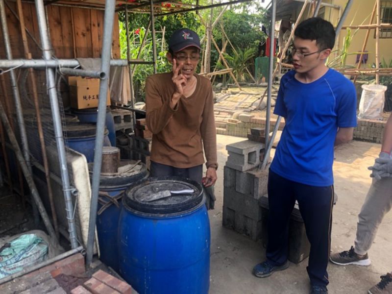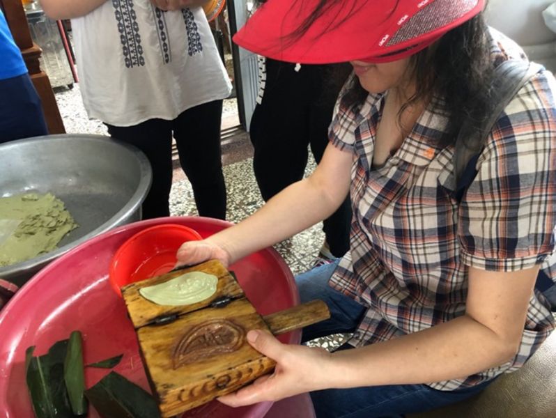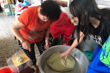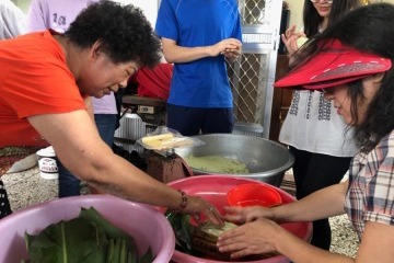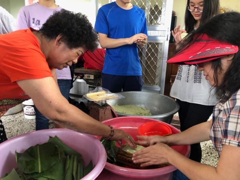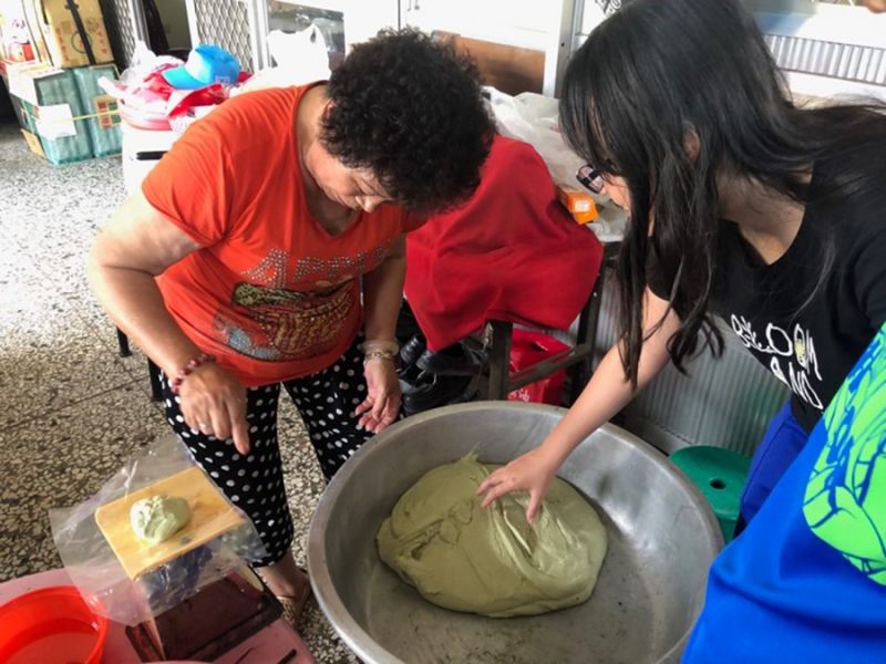 來到農場時,裡面的雞都是自由自在的在雞舍與農場裡走動,並非和平常看到都被關在架子裡的雞一樣,廖老師教導學生如何以愛護環境方式養雞和製作草仔粿。 製作草仔粿時,學生以分組方式學習製作傳統草仔粿,農場婆婆十分用心在前三天就開始為同學備料,深怕做不夠、吃不飽,開始製作時,同學們每人捏一團由葉子染色而成的麵團,且搓揉呈圓形,並將剛炒得香噴噴的餡料塞進剛剛搓揉的麵團中,餡料裡能明顯看到有絞肉、薑絲各式各樣祖傳秘方都在那餡料裡,塞餡料也必須要有技巧,如何塞的適中,並且不讓他露出來,都是一門技術,接著婆婆使用木頭所製上面印有葉子狀紋路的模具,上面得先抹點油以防他沾黏,大家依序將自己揉的麵團壓模,才發現簡單的壓模其實十分需要技術,如何壓才能讓草仔粿壓得好看且平均,之後將粿放到大大的蒸籠裡蒸熟,完成了傳統美食-草仔粿。 於參觀雞舍時,廖老師帶著同學參觀其一手打造之五星雞舍,老師介紹雞的食物不僅僅只有一般的穀物,當中還會加入許多營養,讓雞能夠更健康長大。接著老師帶著同學到湖邊,希望同學們能夠用雞的視角觀察雞群平時都在做什麼,如此才能夠深入其中,廖老師更說雞就是他的家人,並非獲利的工具,從中體會到老師經營農場的用心。透過參訪使學生從長者豐富的經驗中,學習到如何製作傳統美食,且加深了學生們對自然農法與生態保育的觀念。